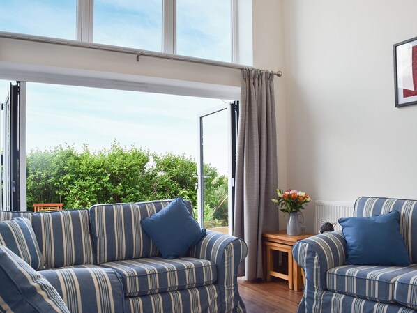 Living room: 42" Smart TV, Gas Fire, Bi-Fold Doors Leading To Patio