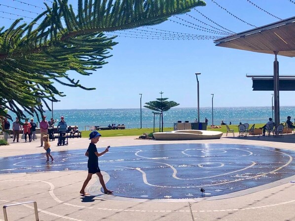 In addition to the fantastic beach and foreshore area right on your doorstop, the apartment offers wi-fi and study console. Entertainment and leisure activity equipment are provided including large screen TV, books, puzzles, assorted board games and children’s activities / toys, picnic set and yoga mat for all to engage.