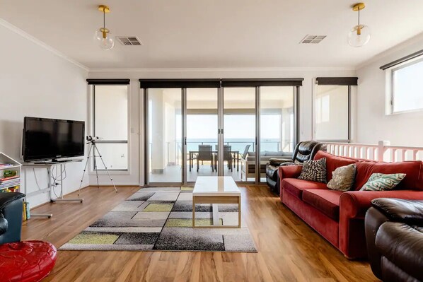 On the Esplanade, overlooking Fleurieu Peninsula's stunning coastline, this large beach house offers an expansive open-plan living space with a massive balcony for sunset views. Enjoy direct beach access and unwind in the deluxe outdoor shower or relax on the lawn with a 10ft trampoline and sandpit nearby.