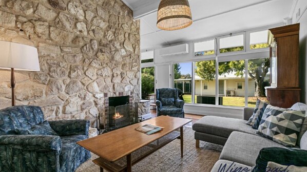 Nestled right on the beachfront and just a few hundred meters from the renowned Star of Greece restaurant, this truly "vintage" holiday home exudes treasured family memories. While the d cor takes you back in time, modern conveniences are not forgotten. Enjoy free Wi-Fi, air conditioning (heating and cooling), a large flat-screen TV, a washing machine, a dryer, and a BBQ. However, in true vintage spirit, the family will need to pitch in for some tasks, like washing and putting away the dishes together. For those who enjoy a cozy fire, the loungeroom features an open fireplace. Just bring your own firewood and kindling, easily purchased from local service stations, to enjoy this charming amenity.