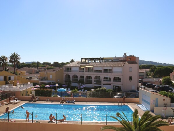 Charming Ground-Floor Studio with Pool, Terrace, Secured Parking, and Amenities for 2 provides a terrace and more.