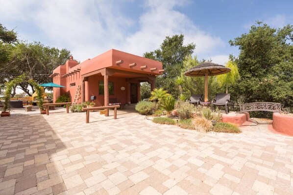 Welcome to our home, Hacienda Felise - Minutes to all points of interest: wineries, beaches, hiking trails, wedding venues, airport! The space Sleeps up to 4 Maximum, 3-5 Night Minimum; Hacienda Felise Estate is the perfect setting for 2-4 adult friends or family members or for up to 2 couples seeking a getaway, wine country adventure, workshop or retreat, whether for a few days or a week. This option includes two of our guest dwellings at the hacienda: Casa de los Sueños Casita and Corazón Sagrado Suite. These two dwellings are separated by a large Spanish-style courtyard, each with their own entrance. Guests can explore the succulent & cactus gardens, have a meditation session in the bamboo oxygen room, find a spot to practice yoga, play bocce ball or other lawn games. On the estate, our two favorite places for viewing a sunset are the guest courtyard or in the gazebo at the top of the gardens. The hacienda setting is serene and peaceful, so let that be your guide for your group. Each dwelling’s features is described below.