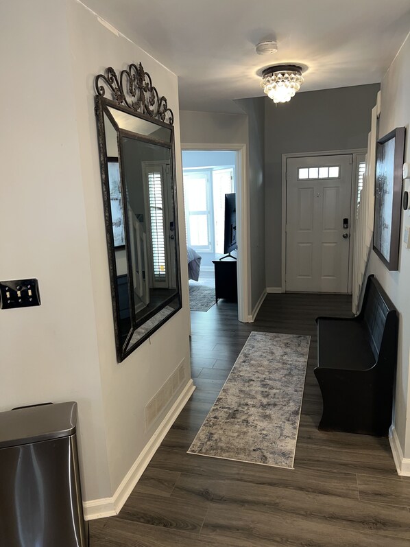 Experience the convenience of a smart home with keyless entry access. Each room is furnished with a queen bed and a queen air mattress, ensuring comfortable accommodations for up to six guests. Additional linens are available for stays lasting 14 days or more.Toiletries are provided for your convenience, and the home is equipped with WiFi and smart TVs, allowing you to stream your favorite Netflix originals at your leisure.