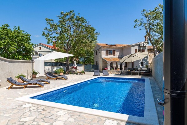 The nearest beach is just 14 km away, and the villa's location offers easy access to picturesque towns across Istria, known for their rich cultural heritage and culinary delights.