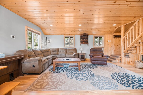 The location was very good. Boulder Bay across the street and a few restaurants within walking distance. We had some issues with the smell of the place and it was reported to the management company. If you are looking for quiet this is not the place. Big Bear Blvd is at the end of the shared driveway and was very noisy especially on the weekends. The driveway is very steep and when we were there the neighbors who shared the driveway had renovations happening and often the driveway was blocked. Three times contractors with trailers could not back down the driveway and had to drive up to the cabin and turn around behind it so they could drive back down the driveway. Each time they would knock on the door and I would have to move my car. There was only one mirror in the entire place, in the downstairs bathroom. Also the 2nd bedroom headboard was leaning against the wall in the 1st bedroom over the dresser. The master bed though, was very comfortable and it was lovely being up against National Forest.