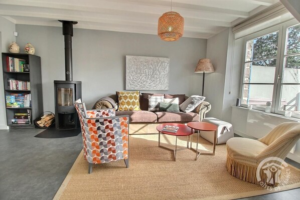 Your vacation rental includes on the ground floor: living room (wood stove: wood provided free of charge by the owners to heat you throughout your stay) and fitted kitchen area, 1 bedroom with dressing room (1 bed 160x200), bathroom (shower) and separate toilet. Upstairs: 2 attic bedrooms (1 90x190 bed), separate wc. Hifi connected speaker and TV connected wifi pack Orange. 2 in 1 washer-dryer machine. Private terrace on the back and land of 150 m² in front. Telework space set up in a bedroom. Office service (fax, scan, copies) free from the owner 50m away, and also for your comfort, possibility of withdrawal by the owners of your shopping done at the Drive du Super U at the end of the street... On the heights of Binic, in a residential street, the comfortably furnished gîte les flots welcomes you for a holiday by the sea. As a couple or family, you will choose this rental for its privileged location: 100m from the GR34, 500m from the ¨Pointe de la Rognouse from where you will enjoy a magnificent panorama of the Binic resort, which you can reach by taking the hiking path. Corps de Garde beach is 600 m away: it is the wildest beach in Binic, a quiet beach of sand and pebbles, bordering Etables sur Mer. Fancy entertainment? Go to the center of Binic 800 m away and stroll along the quays lined with shops and restaurants. The on-site Banche beach is popular in summer for its seawater swimming pool and children's games. If you opt for the idleness formula, you will enjoy relaxing on the terrace at the back of the well-sheltered house. 6.4 km from St St-Quay Portrieux, 18 km from St-Brieuc, On the heights of Binic, 500 m from the sea, an address to reserve for its privileged location...in a relaxing environment!
