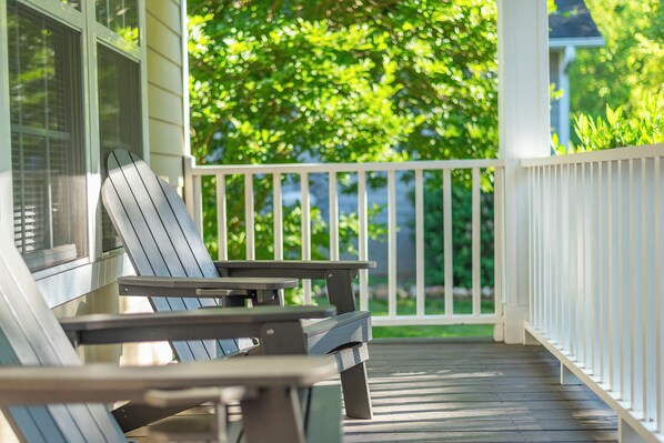 • Covered front porch with several Adirondack chairs for ultimate relaxation