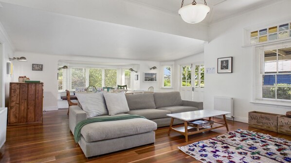 The perfect family setting, Quinees is complete with toys, books and DVDs and a large back garden with an entertaining deck, BBQ, trampoline, fruit trees and a cubbyhouse. With or without kids in tow, this charming cottage offers a relaxing retreat.