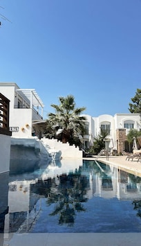 Costa Sariyaz Hotel offers a peaceful retreat in Bodrum City Center with practical amenities. Enjoy the outdoor pool, poolside bar, garden, complimentary breakfast buffet, in-room WiFi, and assistance from multilingual staff at the concierge desk.
