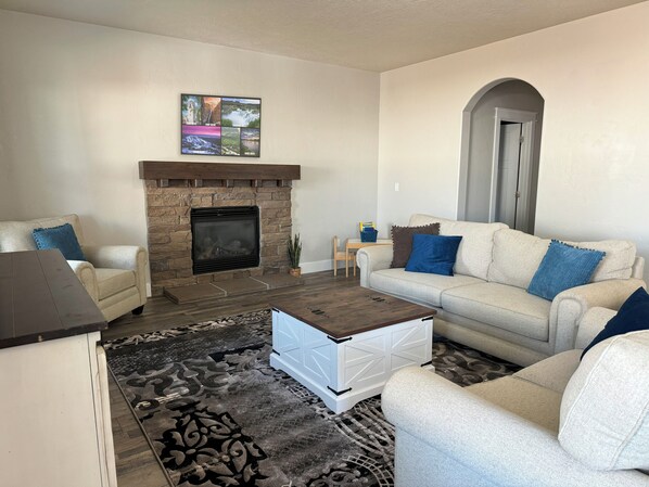 Smart TV, fireplace, DVD player, books - Family-Friendly Stylish 5BR w/ Theater & Hot Tub in Meridian Idaho (Meridian)