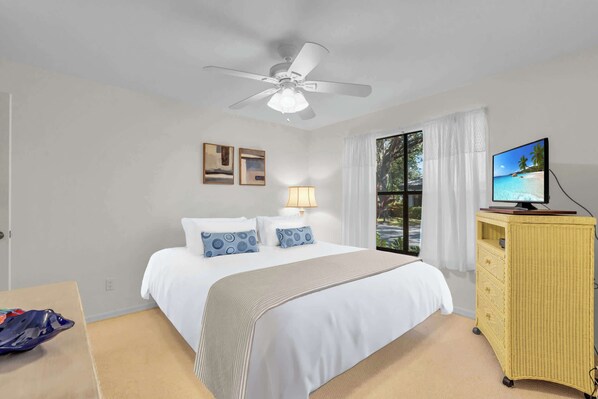 Located in the exclusive Burning Tree subdivision of Bonita Bay, this attached villa is one of only 42 semi-attached homes set amid five lush acres, ensuring privacy and tranquility. Offering a comfortable stay for our seasonal guests, the villa features a King bed, Queen bed, and two Twin beds, along with a sprawling en suite main bathroom and a second full-sized bathroom. With ample amenities, including a well-stocked kitchen and 3 bikes and 4 beach chairs, this villa provides a seamless and relaxing getaway.