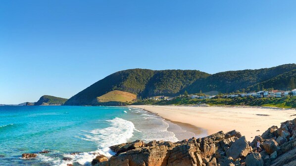 Famed for being the beach which guarantees a good wave, Blueys is undoubtedly a favourite with surf enthusiasts and those who enjoy a stretch of secluded sand with incredible views. Said to have gained its unusual name due to a cattle mishap enroute to Yarric Mountain (the hill on the southern end of Blueys Beach), locals proudly proclaim this to be one of the worlds finest beaches. Offering protected corners for those who want to watch the swell from afar, this lush stretch of coastline is framed by forest-covered headlands and nestled between Sandbar Beach to the south, and Boomerang Beach to the north.