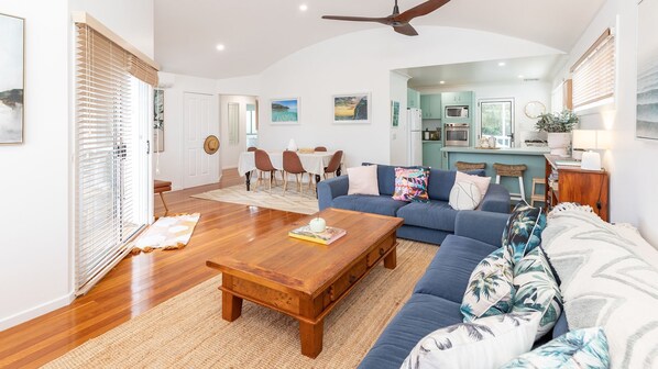 Airy and bright, 3 bedroom, 2 bathroom beach house within (very close) walking distance of Boomerang Beach (~150m).