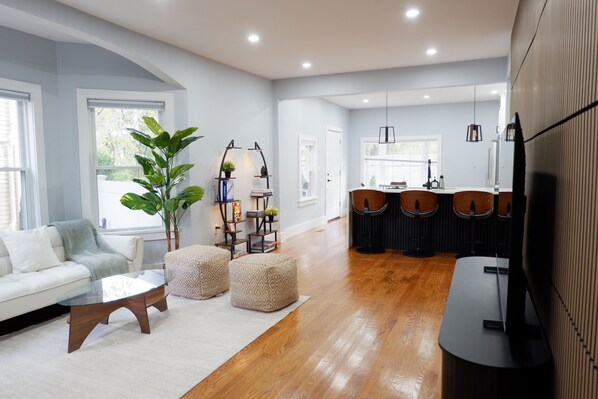 Full Access Guests have exclusive access to the entire first-floor unit, offering privacy and comfort throughout your stay. Enjoy all the amenities of this modern Boston retreat, including a private entrance, full kitchen, in-unit laundry, and outdoor area.