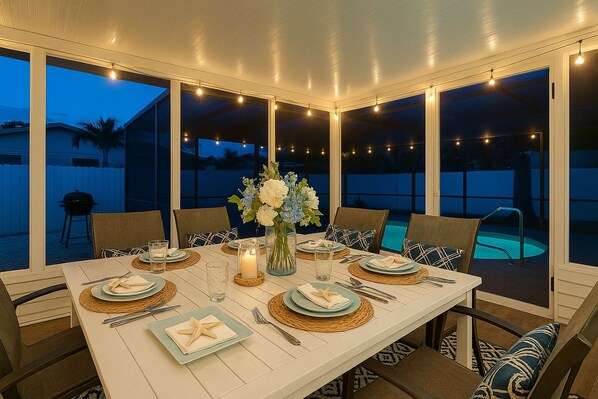 Step into the bright, spacious Bradenton House in Florida, exuding coastal charm with a private screened pool and covered dining area. Explore nearby Anna Maria Island beaches, parks, and walking trails or unwind by the heated pool and hot tub.