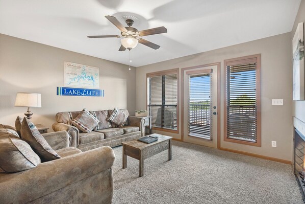 Just minutes from Silver Dollar City, this charming condo is perfect for your family vacation. It features a full kitchen with granite countertops, a relaxing living room with a fireplace, and a private, covered balcony. Enjoy a family breakfast at the spacious dining table before heading to your favorite Branson shows and attractions. The bedroom has two queen-size beds, and the living room offers a queen-size sleeper sofa and a full-size Murphy bed for additional sleeping arrangements. Enjoy the convenience of an in-unit washer and dryer for longer stays or extra fun days on the lake.