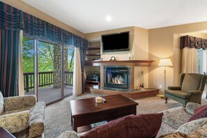 StoneBridge Village Resort offers serene surroundings and a relaxing retreat in its two-bedroom villas. Unwind with the master bedroom's king bed, or enjoy meals together in the full kitchen and covered deck seating. As our guest, you'll have access to an outdoor pool, playgrounds, tennis courts, an 18-hole golf course and on-site restaurant.