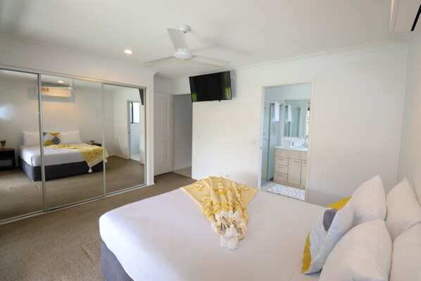 Guest house Deluxe Back Unit (Superior Queen Room) are equipped with a seating area and a flat-screen TV. Each room has a kettle and a shared bathroom with free toiletries and a lounge room with a 2nd Android TV. Outdoor eating area with table and chairs on patio