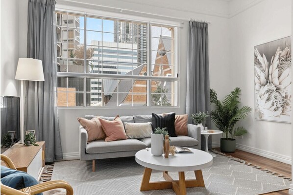 Living area - The Manhattan Residences w/ Soaring Ceilings & Gym (Brisbane)