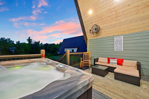 • Soak in the hot tub while taking in the fresh mountain air