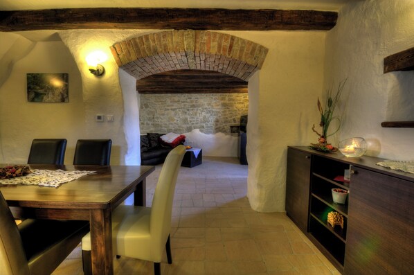 Enjoying a secluded setting near a picturesque stream, Traditional Stone House is an Istrian village offering renovated houses dating back to the 18th century. It features an outdoor pool and private patios with sun loungers and picnic areas. It is located in Kotli, 7 km from Buzet. Decorated in rustic-style with stonewall elements and wooden beams, the houses feature a fireplace, living area with flat-screen TV and DVD player and a fully equipped kitchen with a dining area. Featuring a hairdryer, private bathrooms also come with towels and linen. Barbecue facilities are available. Kotlić Restaurant serving local cuisine with terrace above a stream is just 100 meters away. The nearest grocery store is in Buzet. An array of activities can be enjoyed including horse riding, cycling and hiking. The property helps to organize a balloon flight over the region, free climbing excursions and enduro motorcycle rides. The smallest town in the world, Hum, is just 7 km away. Istrian landscape is known for its little mediaeval towns like Motovun, Grožnjan, Oprtalj and others, all within a-30 km radius. Beaches can be found in Lovran and Opatija, both 35 km away. Lim Canal rich with oysters and mussels is 45 km from the property. Pula Airport is 63 km away. Private parking is provided free of charge. Two-Bedroom Stone House (4 Adults) Decorated in rustic-style with stonewall elements and wooden beams, this house features a fireplace, living area with flat-screen TV and DVD player, fully equipped kitchen with a dining area and a private bathroom. A patio with seating furniture is at guests' disposal. One of 8 beautifully renovated traditional stone houses in the protected rural entity Kotle, registered as one of Croatia's cultural goods. You can either enjoy only one of our houses, with the access to the common area including the pool, playground and barbecue or you can rent the entire village; ideal for birthdays, bachelorette parties and weddings! The houses are in central Istria surrounded with nature offering a rich variety of activities and experiences, more about that below ...