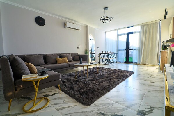 In the heart of 6th October City, Cairo, Rooftop Apartment offers a serene retreat. Enjoy contemporary design with large windows and an outdoor terrace providing plenty of natural light. The fully equipped kitchen and state-of-the-art bathroom ensure a comfortable stay.