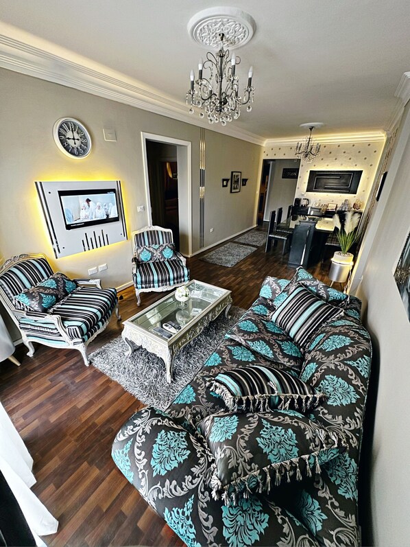 In New Cairo, The Arabella House offers a charming family-owned apartment. This cozy retreat features two bedrooms with spacious wardrobes, ironing facilities and air conditioning for a comfortable stay. Conveniently situated near Arabella Plaza Mall, guests can enjoy easy access to restaurants, supermarkets and entertainment options within walking distance.