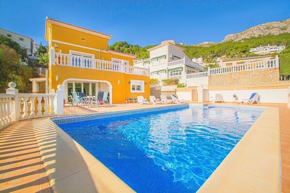 Villa with panoramic views of the sea and the Rock of Ifach, with private pool.