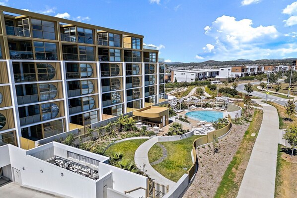 This modern 1-bedroom apartment in Denman Prospect offers a stylish and convenient stay. Ideal for solo travellers or couples, it features a comfortable living area, a well-equipped kitchen, private courtyard and communal outdoor pool. Enjoy easy access to local shops, parks, and public transport. With self-check-in and amenities like air conditioning, heating, and on-site parking, this apartment is the perfect choice for your next stay. The space This contemporary loft-style apartment offers a relaxing and bright atmosphere, with spacious interiors and modern finishes. The open-plan layout features a fully equipped kitchen with electric appliances and a comfortable living area with a large sofa and TV. The bedroom, with a double bed, offers a restful retreat. The apartment’s private courtyard provides an outdoor space for relaxation or venture out to the communal pool for a refreshing dip. The stylish interior includes laminate flooring, and the bathroom is well-appointed, completing the perfect space for your stay. Living Room -Couch seats 3 people -TV with all streaming platforms (guests to use their own credentials) Kitchen & Dining Area -Fully equipped with cutlery and utensils -Oven and electric stovetop -Countertop seats 2 Bathroom & Laundry -Laundry room available with washer only -Travel essentials and towels provided Amenity Notes -On-site parking is available in an underground car park (1 space) -A/C (heating + cooling) in the living room -1 Portable heater available -Wi-Fi is available -Private courtyard with outdoor seating for 3 -Communal outdoor pool Local area description Denman Prospect is a peaceful suburb in the Molonglo Valley, offering easy access to shopping, parks, and public transport. Nearby attractions include the National Arboretum, Stromlo Forest Park, and Lake Burley Griffin. It’s the perfect location for guests seeking a tranquil environment with easy access to Canberra’s city centre. House rules You are staying in a friendly and peaceful neighbourhood and we kindly ask you to respect the community and your surrounding neighbours. The following strict House Rules apply: - No loud noise between 10 pm and 8 am - No parties or antisocial behaviour - No additional people are to access the property without our prior approval - No pets are allowed in the property without approval - No smoking is allowed at any times - If you break something, please let us know - To help protect all floor coverings, do not wear any shoes inside the property Please be aware that excessive noise such as amplified music, vocals or screaming or anti-social behaviour in the property or common areas can cause neighbours to complain to us, the Building Manager, Council Rangers or Police. IMPORTANT: - Any breach of the House Rules may lead to a $500 fine plus compensation for any cost/damage created and immediate eviction of the property without refund. - Pets are available on request unless the property states it is pet friendly. Any stays with pets will incur an additional cleaning fee of $200. Finally, when checking out, we kindly ask you for the following: - Please leave all beds unmade - Please clean up your dishes and put them away - In case you have rearranged furniture, please put it back to the original location - Please take out the rubbish and remember to use the right bins - Please ensure all appliances, A/C and lights are off and doors and windows are closed. - Please check your accommodation thoroughly before departing to avoid any unintentional items left behind. We are not liable for any items left behind after your stay. In the rare event that a guest reports a missing item, we will make every effort to locate it for you, but we cannot guarantee its retrieval. If the item is found, we will gladly assist in arranging its return to an address within Australia, subject to postage and service fees. Interaction with guests Welcome to MadeComfy! Our local team curates stays in exceptional Australian & New Zealand properties, ensuring style, comfort, and prime locations for discerning guests. We prioritise your needs to provide a memorable home-away-from-home experience. Explore our digital guidebooks for local recommendations, and don't hesitate to contact us throughout your stay. We're here to ensure your comfort - enjoy your stay with MadeComfy. Notes -There are stairs leading to the apartment and inside the apartment -Apartment is loft style For your comfort, this property is prepared with professional-grade hotel-style linen, including a three-sheet setup, ensuring a fresh and hygienic sleep experience. Extra Services: - Early Check-in: Our standard check-in is at 3 pm. To guarantee early access to the property we suggest booking the night before if available. Otherwise, early check-in is subject to availability from the night before at an additional cost. - Late check-out: Our standard check-out is at 10 am. To guarantee a later check-out of the property we suggest booking an additional night if available. Otherwise, a late check-out is subject to availability from the night before to an additional cost. - Baggage: For security reasons, we are unable to receive or to keep unattended baggage before check-in or after check-out - We provide a small welcome amenity pack to get your stay started. - This booking is protected with coverage for lost baggage and emergency medical expenses, provided by Travel Support with claim upto 500 AUD (T&C Applies). For more details reach out to Guest Support team post booking. Access description Key collection is onsite. Further details will be provided 3 days before check-in if your booking is successfully reserved. Getting around Public Transport Bus services operate nearby, providing quick access to Canberra’s city centre and beyond. The nearest bus stops are just a short walk from the property. Getting There The property is approximately a 25-minute drive from Canberra International Airport and just 15 minutes from the city centre.