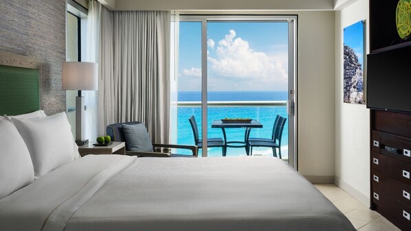 Nestled in the heart of Cancun's Hotel Zone, this beautiful resort offers spacious Villas with full kitchens and two balconies boasting ocean views. Enjoy a fitness room, WiFi, cozy living rooms with sofa beds for extra comfort. Take a dip in the sparkling infinity pool or unwind at one of three pools: zero entry pool overlooking the sea or kids' pools with water games and slides.