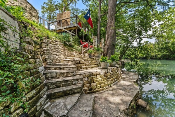 The serene beauty of Misty Mountain comes with a few important safety considerations. The backyard features rocky, uneven steps leading down to the Guadalupe River, creating a picturesque but potentially challenging terrain. We urge all guests to exercise caution when navigating these steps, especially during wet or slippery conditions. For families with young children, please note that the steep stairs and uneven ground make this property unsuitable for children under 5. All guests, regardless of age, should review photos of the property’s terrain before booking and take care when accessing the riverfront to ensure a safe and enjoyable stay.