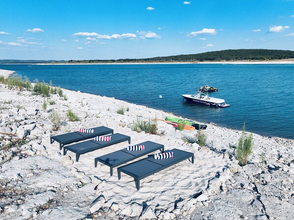 On the beach, sun-loungers, beach towels - JetSkis, Jacuzzi, Private Beach, Kayak, SUP, Lakeview, Lakefront! 3/2 Lakehouse  (Canyon Lake)