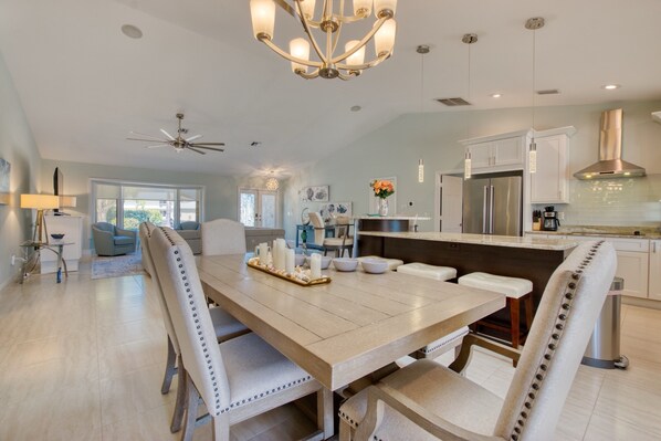 Thanks to its proximity to the Gulf of Mexico, Cape Coral is a perfect place for boaters. The villa features a boat dock and is located right next to a saltwater canal. Thus, you can reach the Caloosahatchee River in just 15 minutes – and head for scenic spots like Fort Myers Beach, Sanibel or Captiva Island. To make your trip even better, the villa provides beach chairs, coolers and parasols.