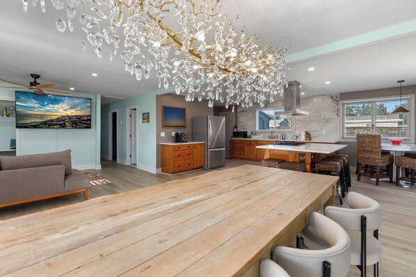This completely remodeled Open Concept home is perfect for group trips & families. Whether it’s our 10 person solid wood dining table, expansive quartz island with a built in cooktop, enjoying coffee at our breakfast nook or lounging on our deceivingly comfortable couch w/a 75in tv, you will not be disappointed. The beds are new & comfortable, the bathrooms are modern & pristine, and the Master Spa Large Hot Tub is perfect to soak and unwind. Your cozy getaway awaits in Cape May at this welcoming ranch style single level home. With four bedrooms featuring two king beds, one queen bed, and two full beds, guests find plenty of space to relax. Our bathrooms include body wash, shampoo & conditioner, towels and hair dryers for added convenience. We also have an outdoor shower to enjoy after a long day at the beach or right before entering our Master Spa Hot Tub! The house offers central heating and AC to keep everyone comfortable no matter the season. Whether you’re unwinding indoors or exploring nearby, this peaceful retreat provides a fantastic base for your stay. Experience the magic of Cape May at our fantastic house. We’re located on Town Bank Road just a mile to nearest beaches in one direction and a 1/2 mile towards Cape May Winery in the other direction. Please be sure to add your dogs to the reservation so it will calculate the correct charge based on your stay. We permit up to 2 well behaved house broken dogs per stay.