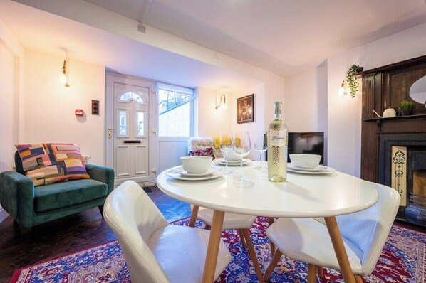 Palmyra Square is a quirky one-bedroom apartment in Newport, offering a fully furnished living area with sofas and Smart TV. Guests can enjoy the entire apartment, including the equipped kitchen & dining area and comfy bedroom with one double bed and two singles beds.