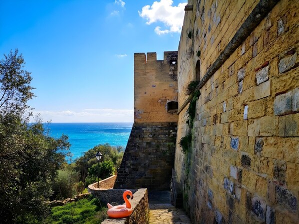 The well-known fortified village of Castro, with its bars, cafes, restaurants and a supermarket, can be reached on foot in just ten minutes. The walk is along a charming path under the ancient Messapian walls. For those who prefer sandy beaches to rocks, the enchanting sandy beach of Porto Miggiano is 5 km away; very charming are also the coves of Porto Badisco and the long sandy beaches of Alimini, north of Otranto.