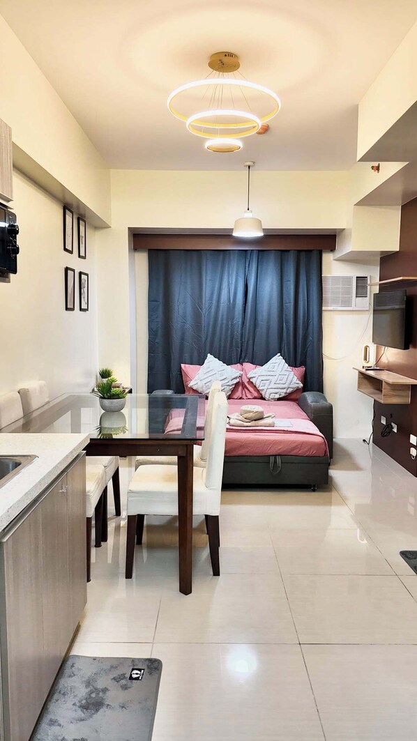Cebu City is waiting for you at this 1-bedroom condo. The lovely space features a queen bed in the bedroom and a comfy sofa bed in the living room, perfect for relaxing after a day of exploring. Guests enjoy a terrific bathroom and a cool, air-conditioned environment that keeps things comfortable. Whether you’re unwinding or getting ready for the day, this enchanting condo offers a cozy retreat. Experience what Cebu City has to offer with a stay at our condo. NEED A PLACE TO STAY IN CEBU CITY?
