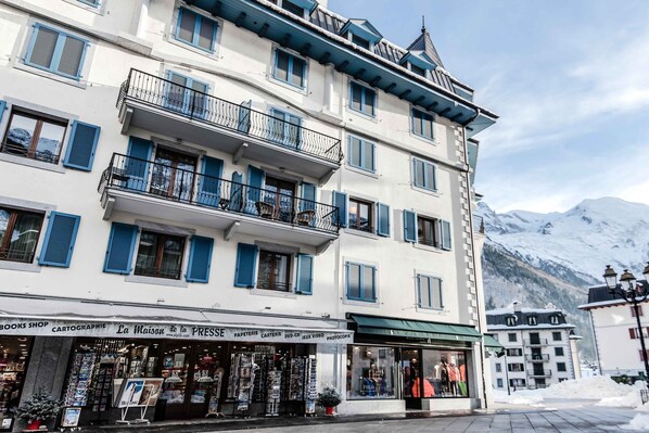 Balmat Apartment is a superb two bedroom apartment in Chamonix, situated right in the centre of Chamonix only seconds from the main square. The private balcony overlooks a large piazza and the main shopping street, Rue du Docteur Paccard . The apartment is 64sqm and has the benefit of two bathrooms as well as a sofabed in the living room, meaning this apartment in Chamonix can comfortably sleep 4-6 people. Balmat apartment has a well-equipped kitchen, and there is a flat screen smart TV in the living room with fibre internet access and it is also possible to plug in a USB cable or key directly to the TV. This Chamonix apartment also benefits from a ski locker, as well as a underground parking garage which is directly accessed by lift. The apartment has a private parking space in the garage and parking for one car is included in the rental fee.