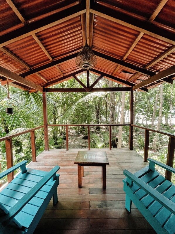 Oceanside deluxe bungalow with AC. King size bed and indoor/outdoor bathroom