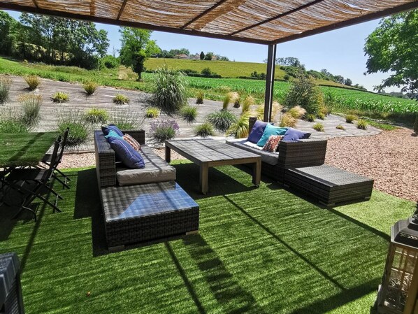 Outdoor dining - Renovated Loft with Private Pool & Spa - Peaceful Retreat in Auvergne (Cognat-Lyonne)