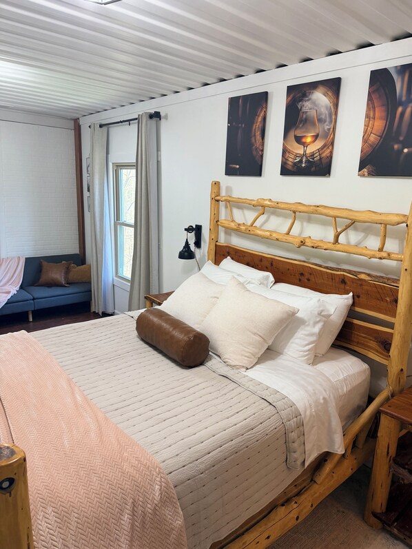 All guest rooms at Bourbon Trail Container Home with Hot Tub 🔥 Private Retreat feature comforts, such as air conditioning, as well as