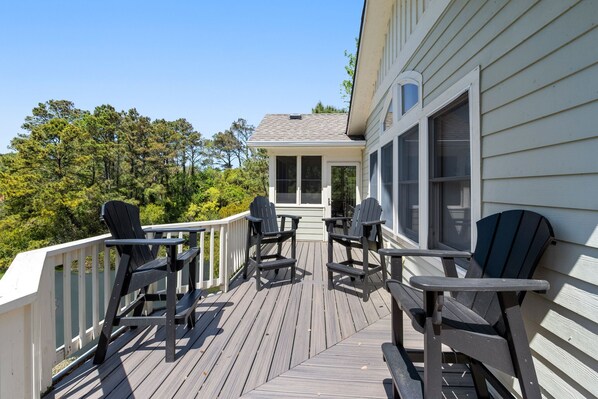 Terrace/patio - Ocean Escape: Lakefront, Pool, Hot Tub, Game Room (Corolla)
