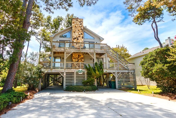 Welcome to 'Play On,' a vibrant vacation home in Corolla. This colorful retreat is close to the Currituck Sound and offers a screened porch with hot tub, gas fireplace, and high-speed wireless internet. Enjoy partial sound views from the top-level decking, community oceanfront pools, or take the trolley (seasonal) to spend the day at the beach.