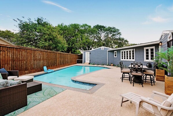 🌴 OUTDOOR BLISS – Large private in-ground pool 💦 with lounging areas + dedicated poolside bathroom so you can swim, rinse, and repeat!