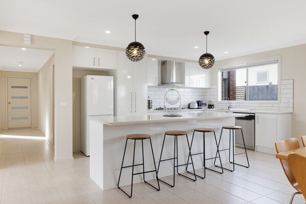 Located in a residential street near the pristine shoreline, The Grampian offers a spacious beach retreat with two lounge rooms featuring TVs, an open-plan kitchen, and four stylish stools for added seating. Enjoy table tennis in the garage or relax in the luxurious bath after exploring nearby beaches.
