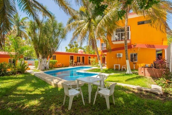 Cozumel's vibrant downtown is at your doorstep in this large apartment, nestled 3 blocks from the main ferry dock and surrounded by shops, restaurants, and bars. Enjoy the beautiful garden and pool of a small hotel setting or spend time indoors with a fully equipped kitchen space.