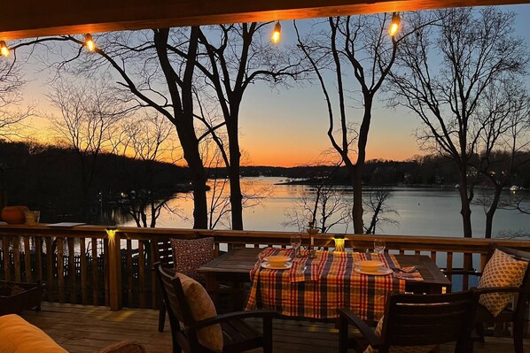 -Multiple furnished waterfront decks off the back of the home and down by the water