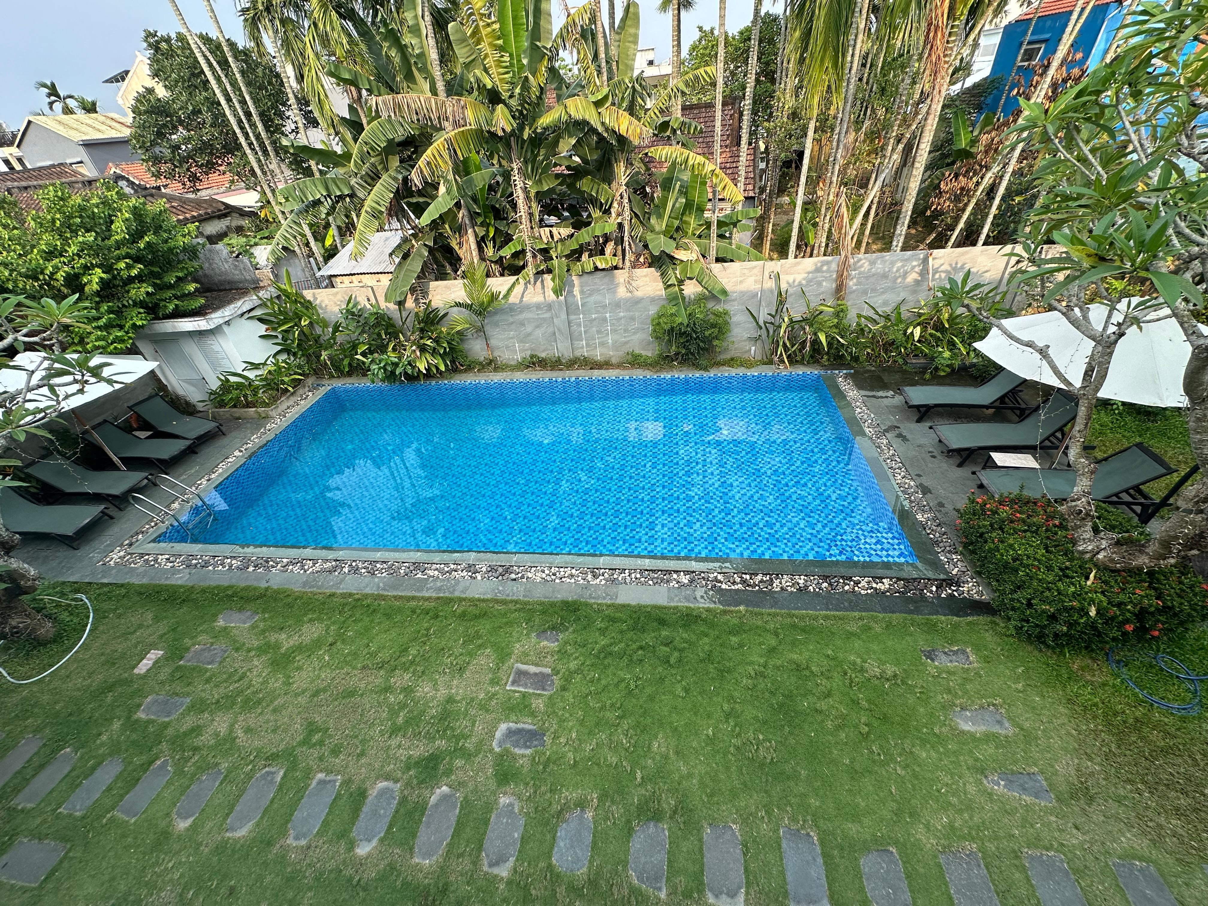 An oasis in the city. A few minutes to walk to the old town of Hoi An. Nice room, nice pool. The bathroom is special, the shower is outside. We liked it, but surely not for everybody.