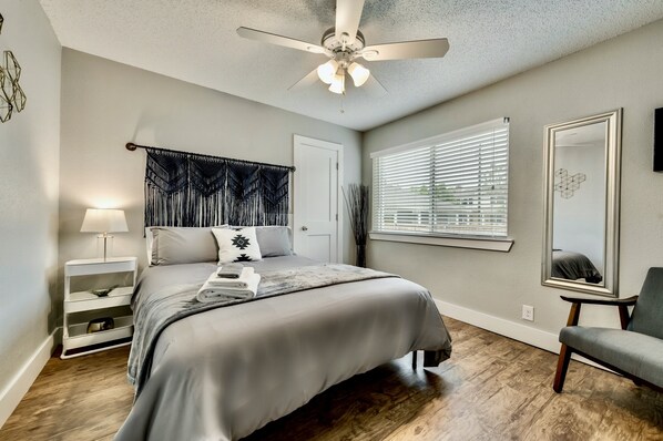 In this vibrant space, you'll find everything you need for a comfortable stay. Cozy up in the colorful 1 bedroom flat with plush bedding and fresh linens, then enjoy the fully stocked kitchen and bathroom. With reliable WiFi and free on-site parking, plus admission to the Award-Winning Dallas Arboretum.