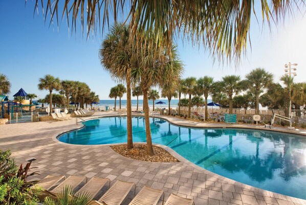 Escape to the oceanfront Ocean Walk Resort, where beachy vibes and fun activities await. Enjoy 3 outdoor pools with a lazy river and water slide, indoor pools, a fitness center, hot tubs, miniature golf course and game room. With free in-room WiFi and an arcade/game room nearby at Daytona Beach Bandshell.